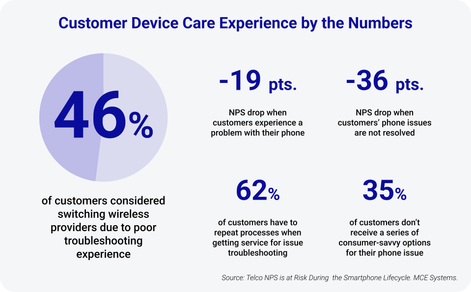 Device care is the third pillar of customer experience, right alongside network performance and billing clarity. It matters because device problems are common and costly: about 20 percent of customers experience a device issue each year. Hereโs how customers respond to it and the potential negative experiences they sometimes face: