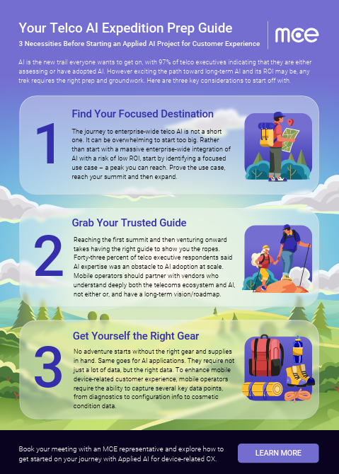 Nearly all of telco executives indicated in an Nvidia survey that they are either assessing or have adopted AI. However, any trek requires the right prep and groundwork. Here are three key considerations to start off with. Click the image below to see the full infographic on the three key steps to implementing an AI program for customer-facing applications.